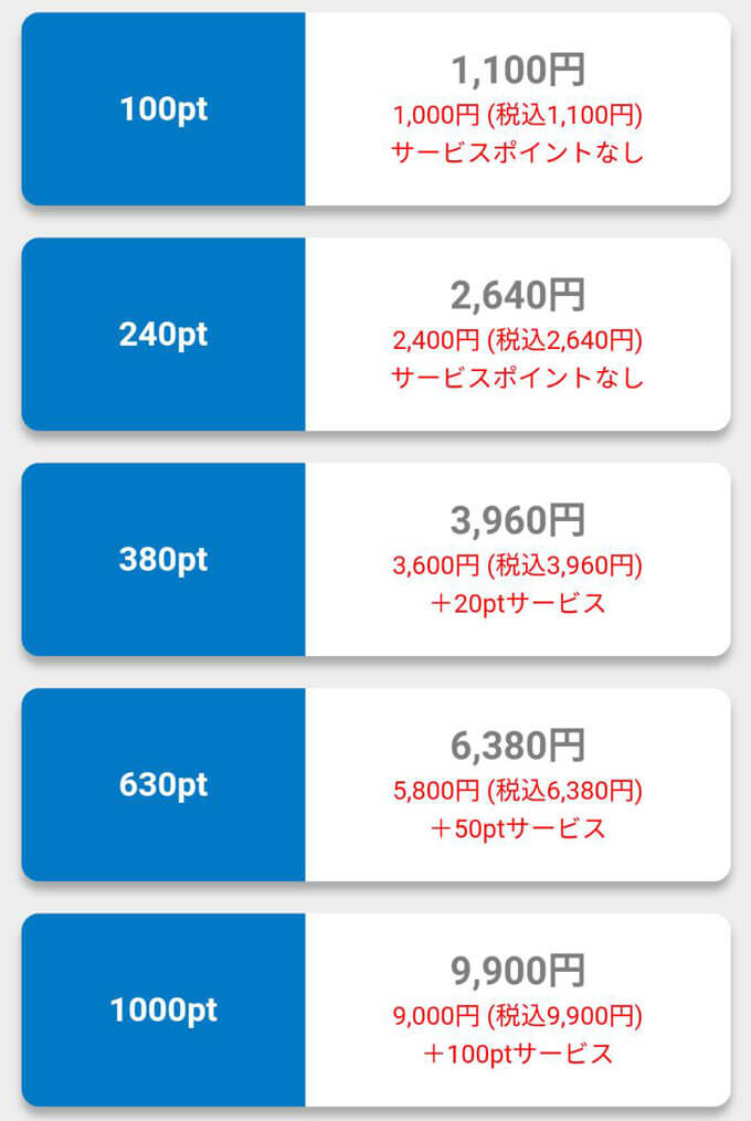 | 購入単位 | 金額 | 1ptあたりの金額 |